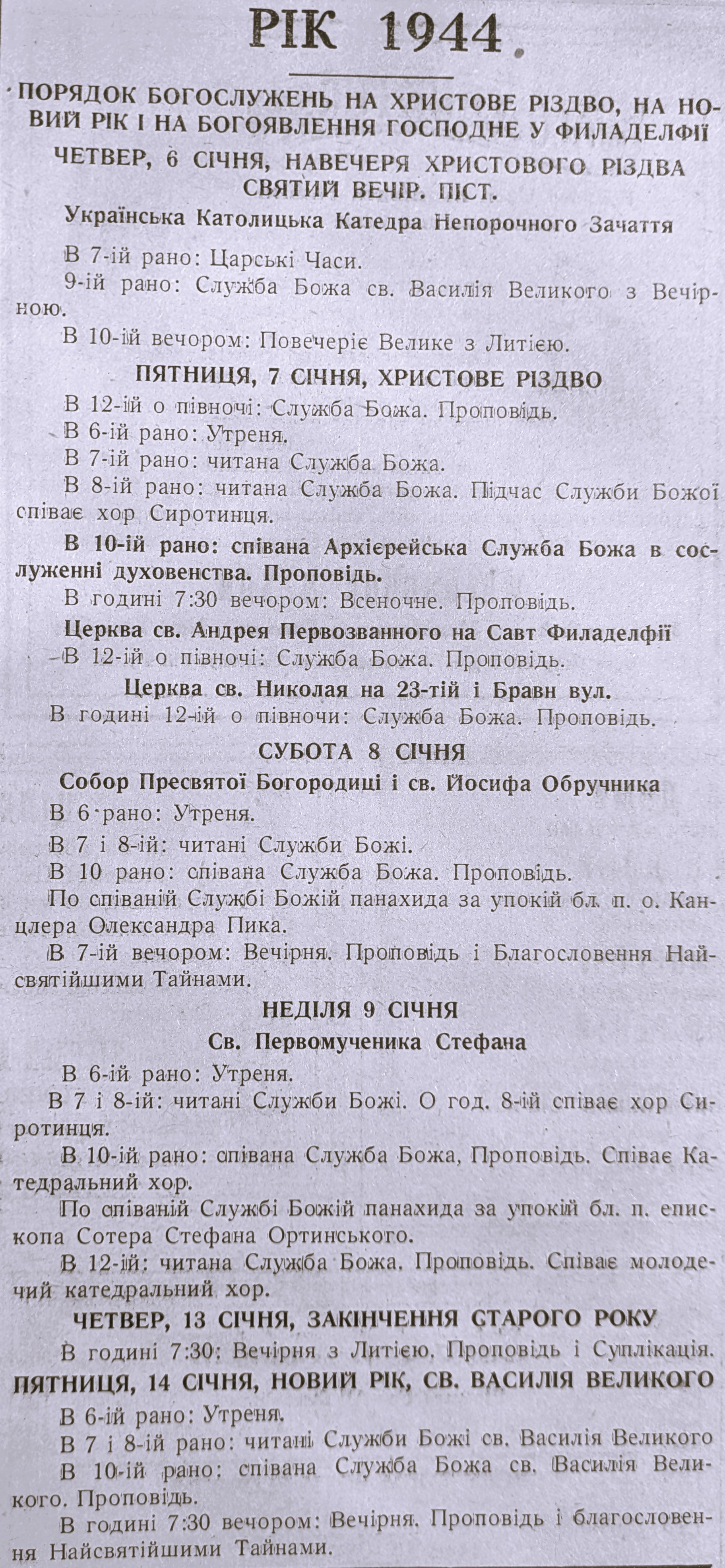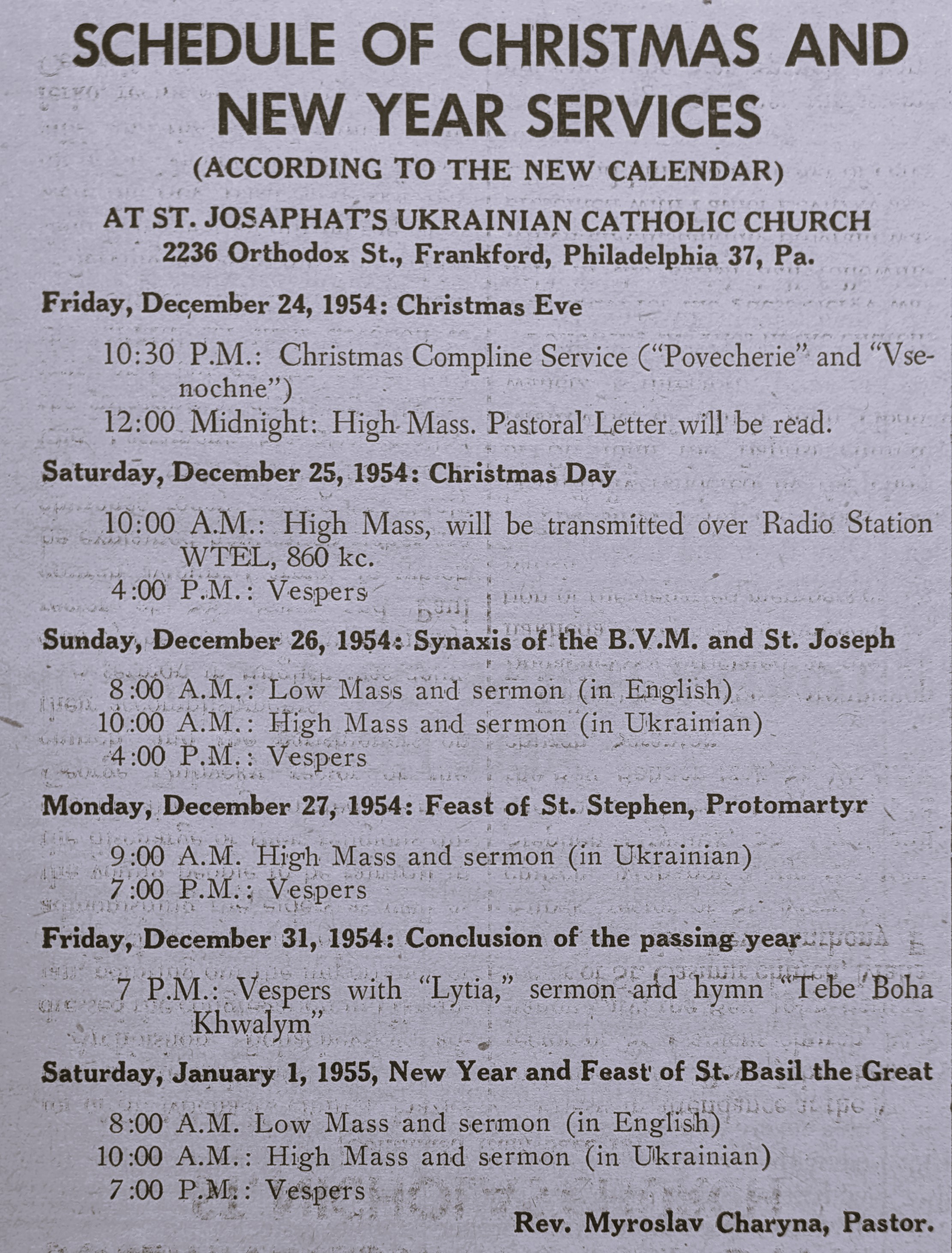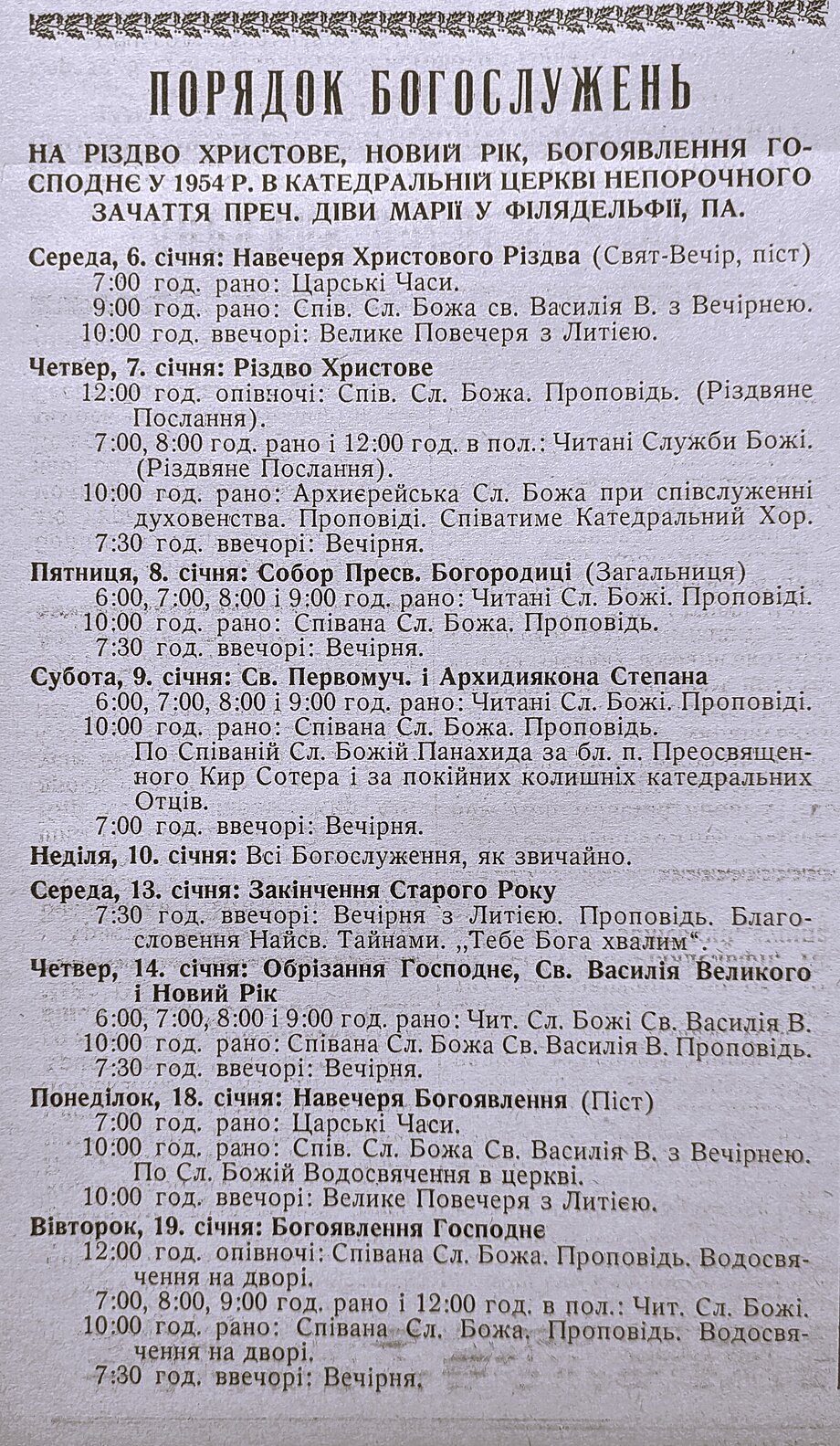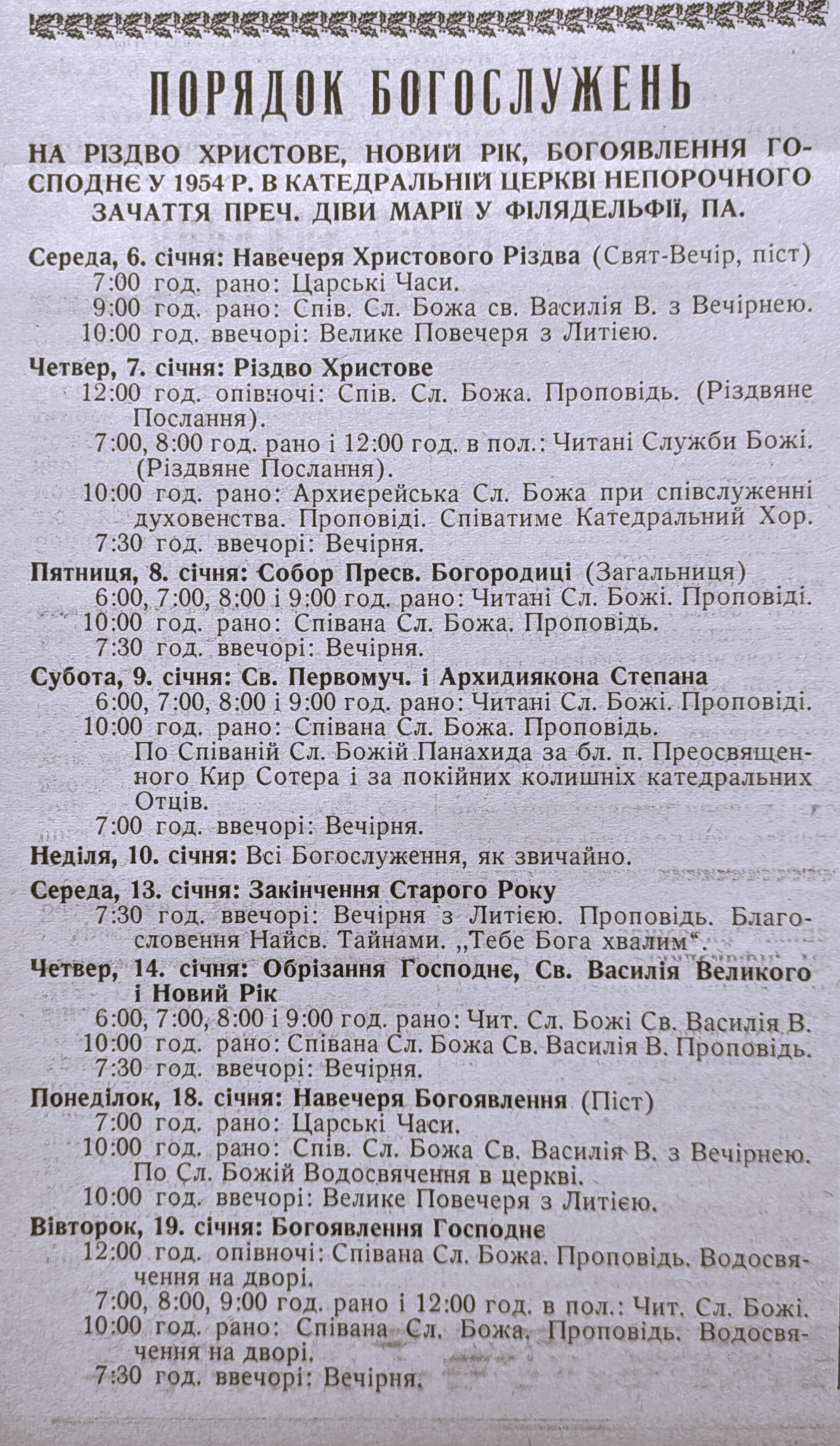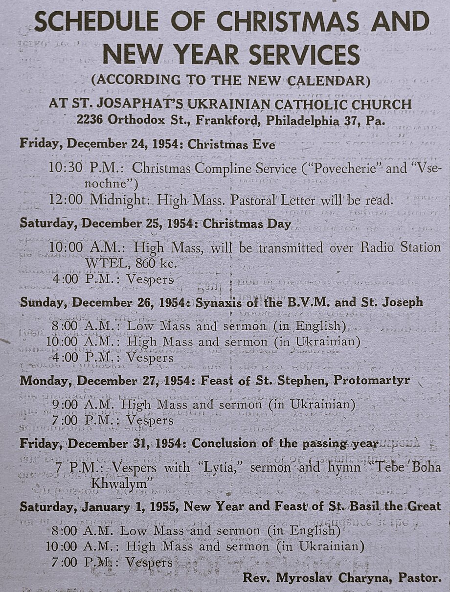 A schedule of Christmas services from the 1940s and 1950s, offering a sense of the pace and intensity of celebrations 70–80 years ago. How do they compare to today?