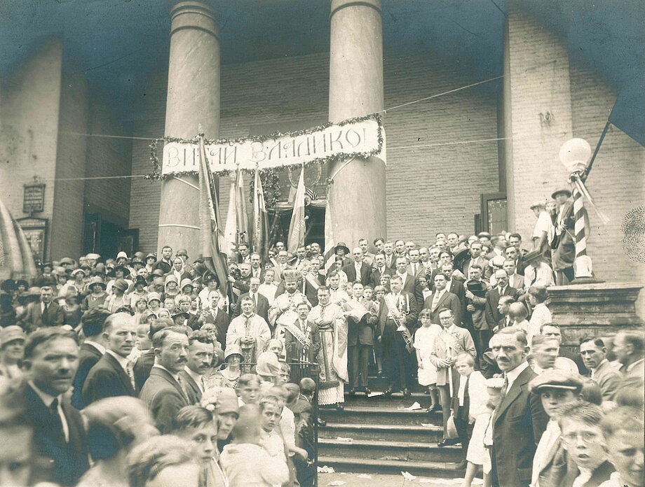 After the warm greetings, the bishops, along with the faithful and priests, made their way to the Uhro-Rusyn Catholic Church of St. Mary on 13th Street and the Ukrainian Catholic Church of St. George on 7th Street. There, they prayed Molebens and sang "Mnohaya Lita" in honor of the new bishops. These parishes still exist in New York, though they have since moved to new church buildings on 14th and 7th streets, respectively.