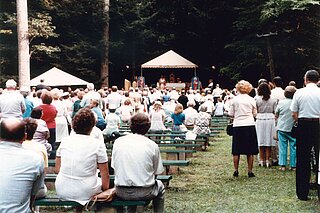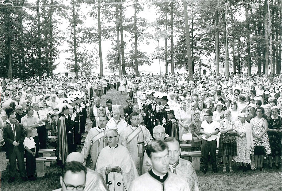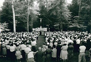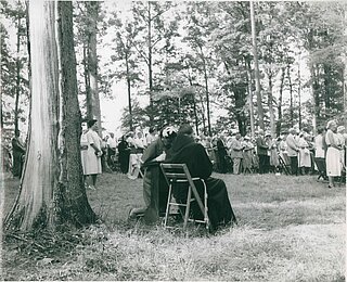 This pilgrimage for world peace typically gathered around 1,500 faithful. Often, a tent was set up in the middle of the forest in Our Lady’s Grove, where pilgrims from all over the country came together to pray and share in this experience for two days.