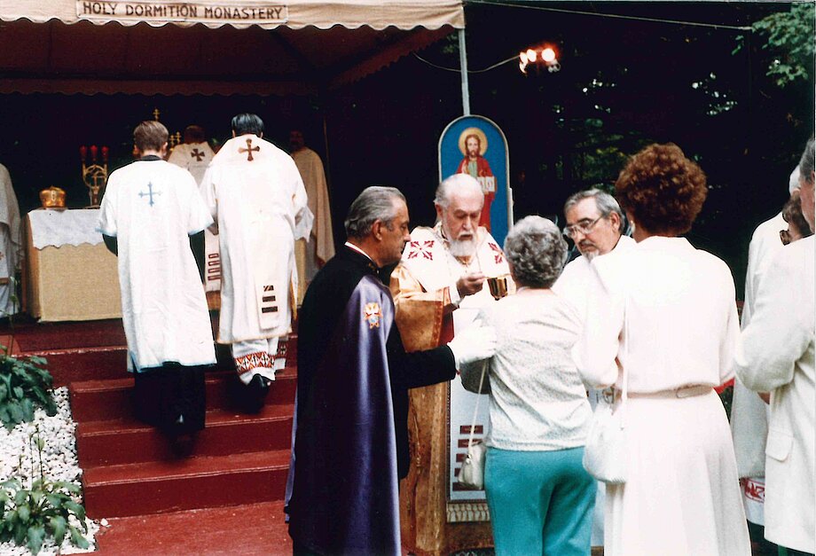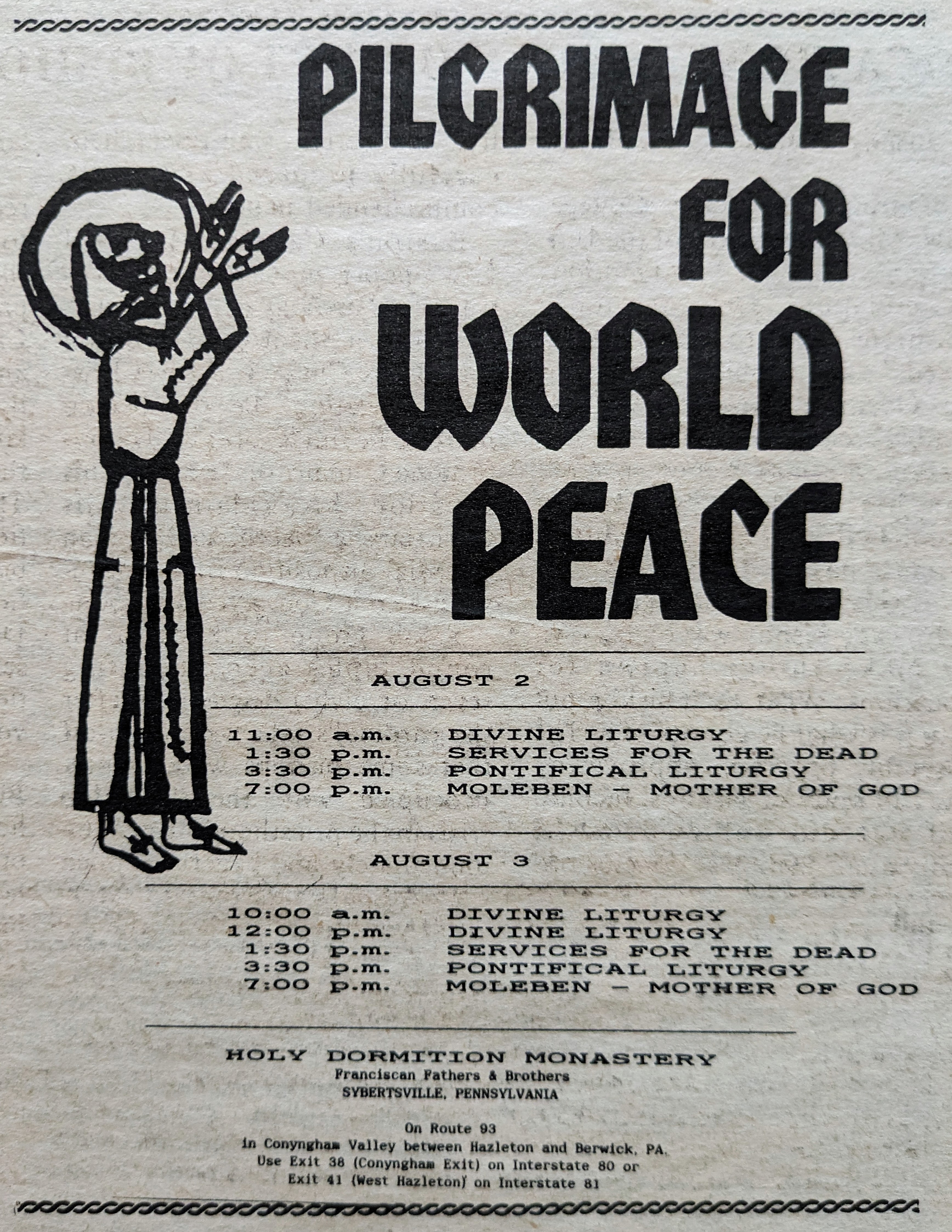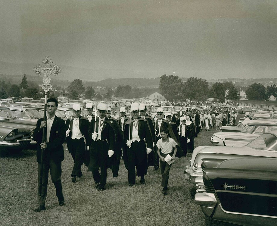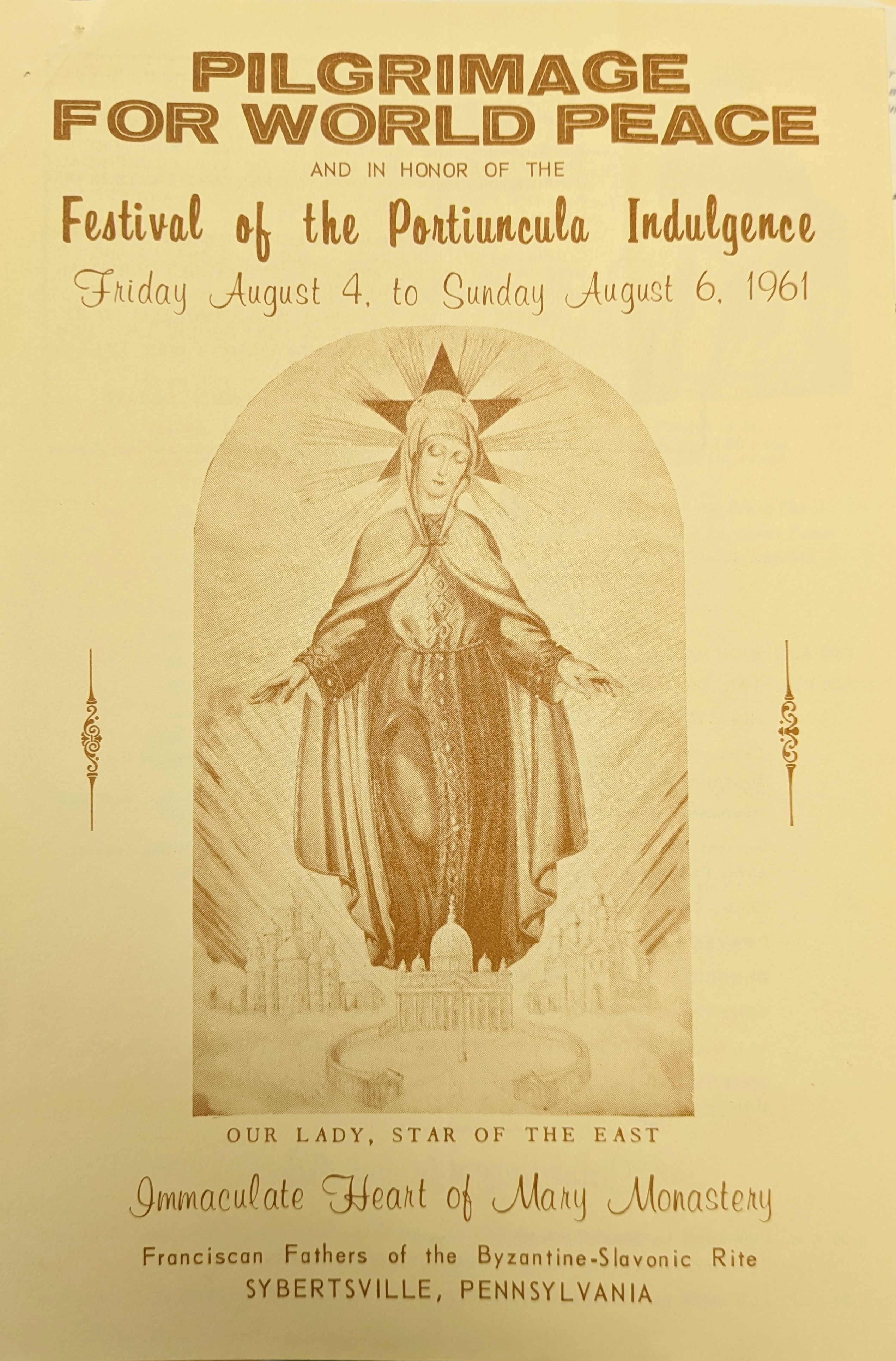 The Franciscan Friars of the Eastern Rite were founded in the USA in 1947. Father Josaphat Omelian Ananevich, who arrived in the United States in 1939, became the first Eastern Franciscan. Before that, Fr. Omelian had served as a missionary in Argentina and Brazil, where he founded the congregation of the Sisters Catechist of St. Anna. In 1947, two Eastern Franciscan monasteries were established in Sybertsville, PA, and Glenbrook, CT. From that time on, Sybertsville became a pilgrimage site, with the event held annually at the beginning of August until 1998.