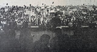 One of the first major events covered by the press in Washington, DC, was a protest on May 21, 1983, in front of the Soviet Embassy. Initially peaceful, the protest escalated as participants broke through barricades and police lines in an attempt to bring their message about the genocide closer to the embassy.