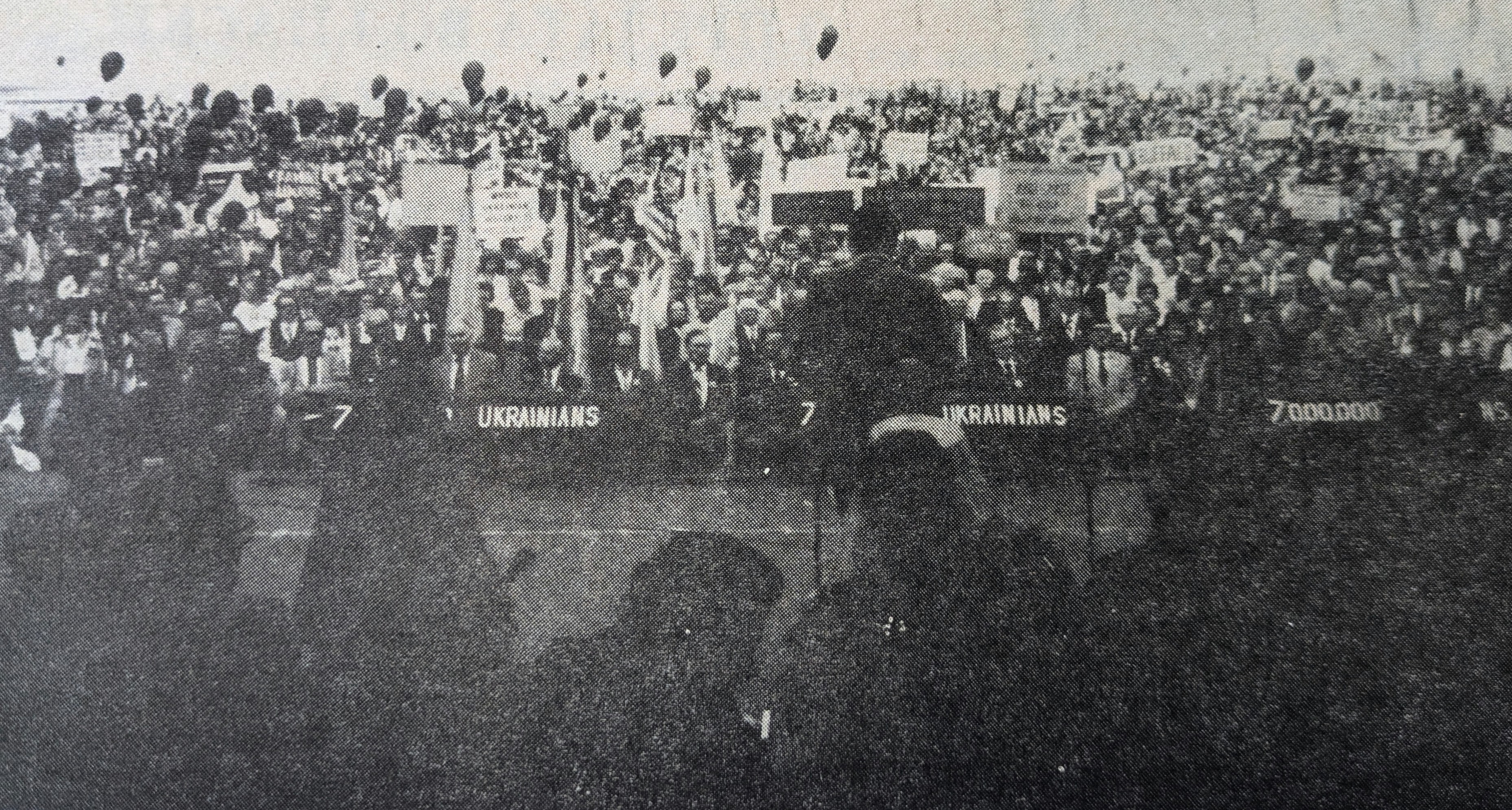 The largest event of 1983, which significantly raised awareness of the 1932–1933 famine, was a demonstration in Washington, DC, on October 2, 1983. On that day, more than 10,000 Ukrainians gathered near the Washington Monument and the Soviet Embassy. Participants came not only from the United States but also from Canada, Europe, and Australia. The demonstration remained peaceful, featuring speeches by representatives of Ukrainian organizations and churches, as well as members of the American government. That evening, a Ukrainian concert was held at Carnegie Hall.