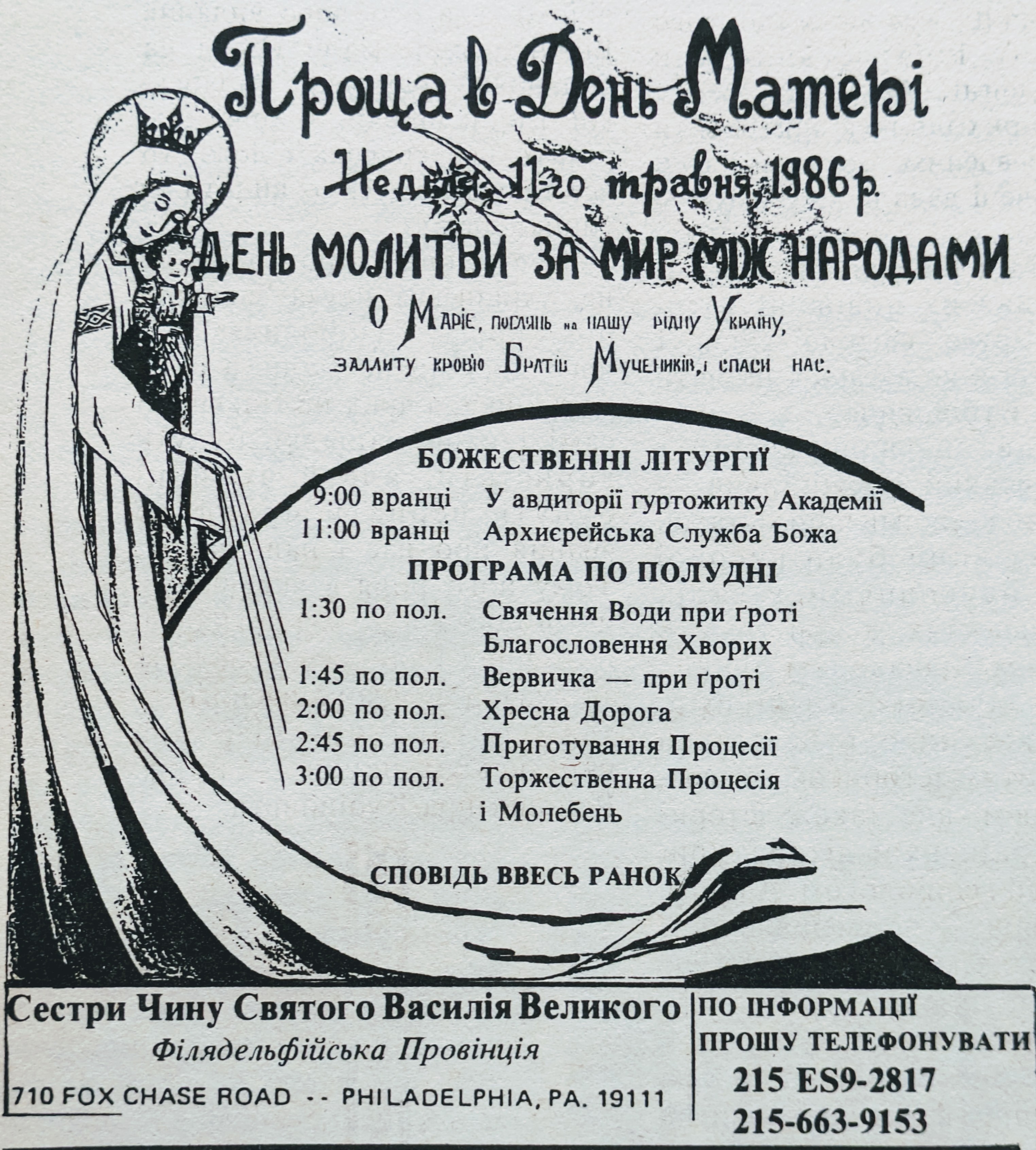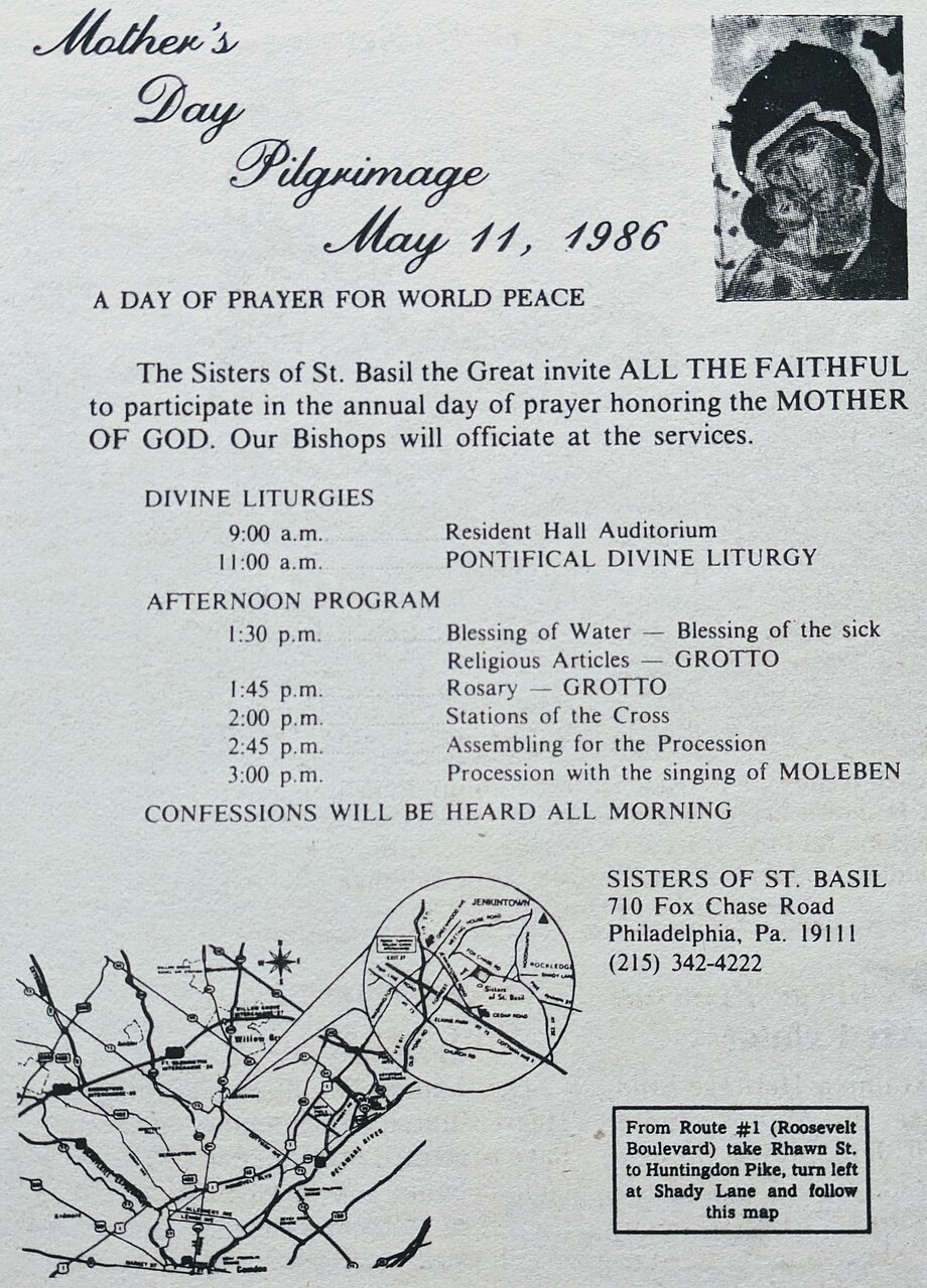 Mother's Day falls in May. This feast is a very cozy and family celebration. Until 1986, it was celebrated in a special and church-wide way in our Archeparchy with the pilgrimage in Fox Chase (Now, for almost 40 years, this pilgrimage has been held on the first Sunday of October.) The May pilgrimage on Mother's Day combined many wonderful occasions for celebration. It involved veneration of the Virgin Mary, greeting all mothers, and often celebrating the first confession and Holy Communion of children who studied in schools organized by the Basilian sisters.