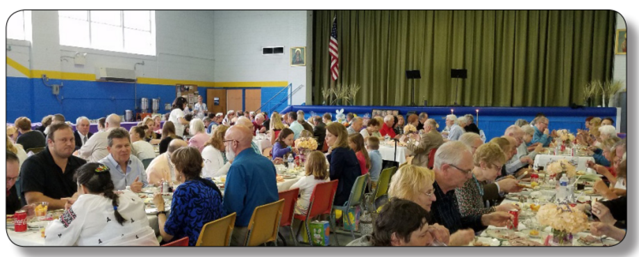 During the Easter season, parishioners gather for a shared Easter breakfast called Sviachene. This tradition, which involves sharing blessed Easter basket items with family after the Easter liturgy, is a key part of the Resurrection celebration. As our parish is like one big family, the communal Sviachene brings everyone together to celebrate Easter.