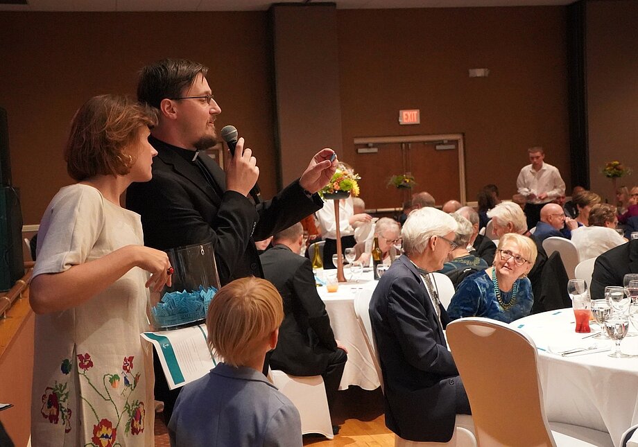 Thanks to the commitment and support of those who donated, the soirée raised $65,690, with donations still being received. All proceeds will benefit the New Priests and Personnel Fund, which supports pastoral initiatives and clergy formation throughout the Archeparchy. Funds were raised through individual donations, silent and live auctions, a 50/50 raffle, and sponsorship contributions.