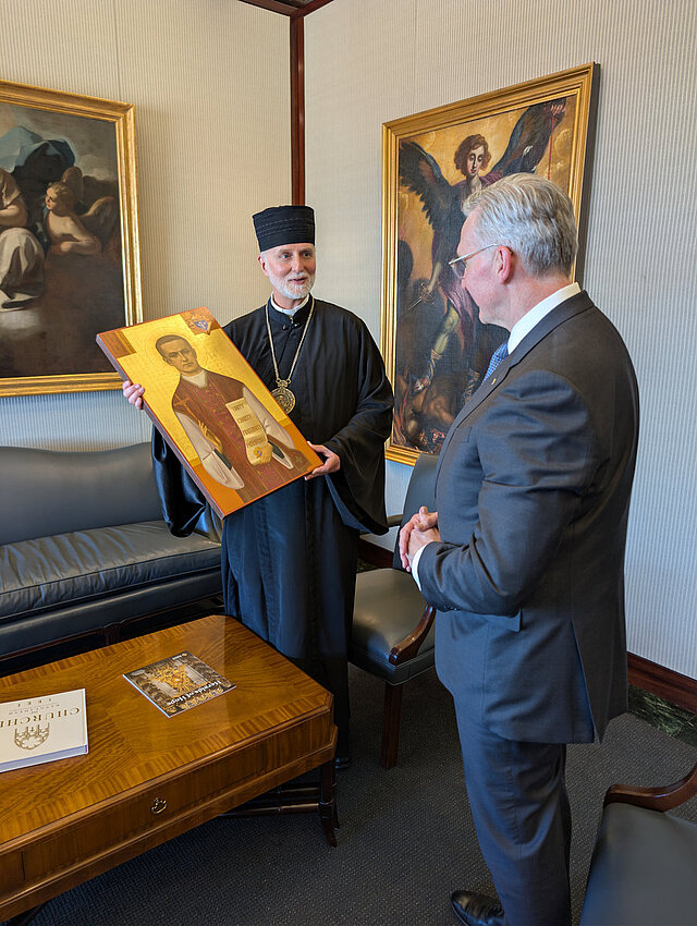 Following the ceremony, Archbishop Gudziak visited the Knights of Columbus Museum, located adjacent to the Order’s headquarters, which preserves and presents the history, mission, and charitable work of the Knights of Columbus.