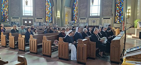 The Pantry operates entirely through volunteer service: preparing and delivering meals, sorting clothing and household items, maintaining distribution spaces, and providing direct support to those in need. Nearly 70 volunteers and supporters attended the anniversary liturgy.
