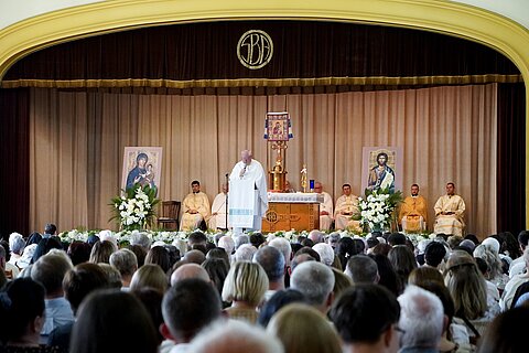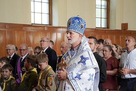 Archbishop Borys Gudziak celebrated the Divine Liturgy, with Mitred Archpriest Peter Waslo preaching. Reflecting on the Gospel for the Feast of the Protection of the Mother of God, Fr. Waslo reminded pilgrims that hope is found in Christ’s constant presence.