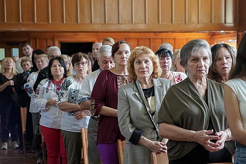 In the afternoon, pilgrims gathered for presentations at the Basilian Spirituality Center — one in English by Gina Christian, reporter for OSV News, and another in Ukrainian by Father Volodymyr Radko, Director of Vocations for the Archeparchy of Philadelphia. Opportunities for prayer included the Rosary, Stations of the Cross, and later the Moleben, Anointing for Healing, and Blessing of Cars and Buses.
