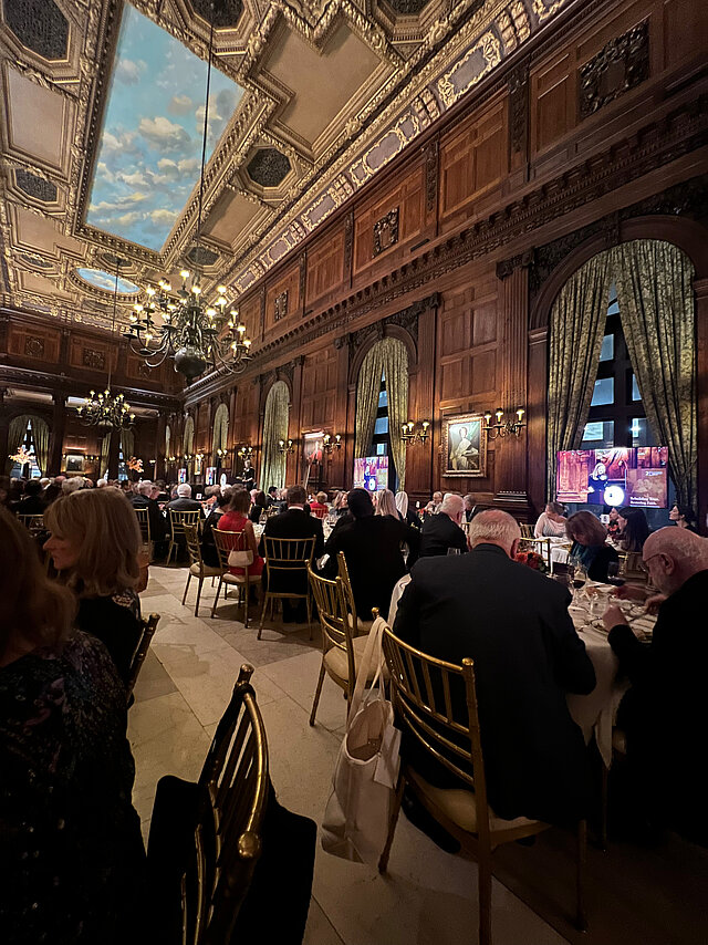 Following the panel discussion, a reception and dinner took place, which included a blessing from His Eminence Cardinal Christophe Pierre, Apostolic Nuncio to the United States; a special tribute to Geoffrey Boisi, founder of Leadership Roundtable; the presentation of the Monan Medal to His Eminence Cardinal Timothy Dolan; and a moderated conversation featuring Peggy Noonan, Cardinal Dolan, and Ken Langone.