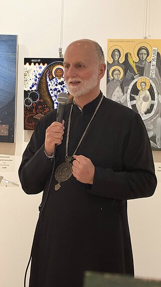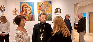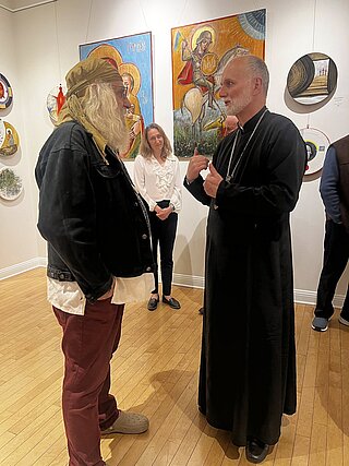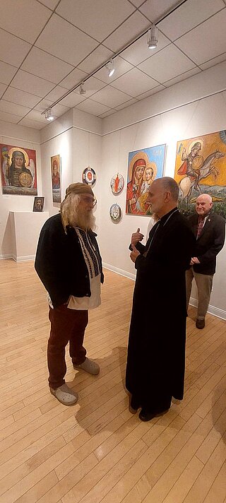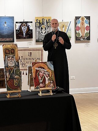 Chicago, IL — October 15, 2025. Metropolitan Archbishop Borys Gudziak attended the opening of an icon exhibition by renowned Ukrainian artist Lev Skop at the Ukrainian National Museum.