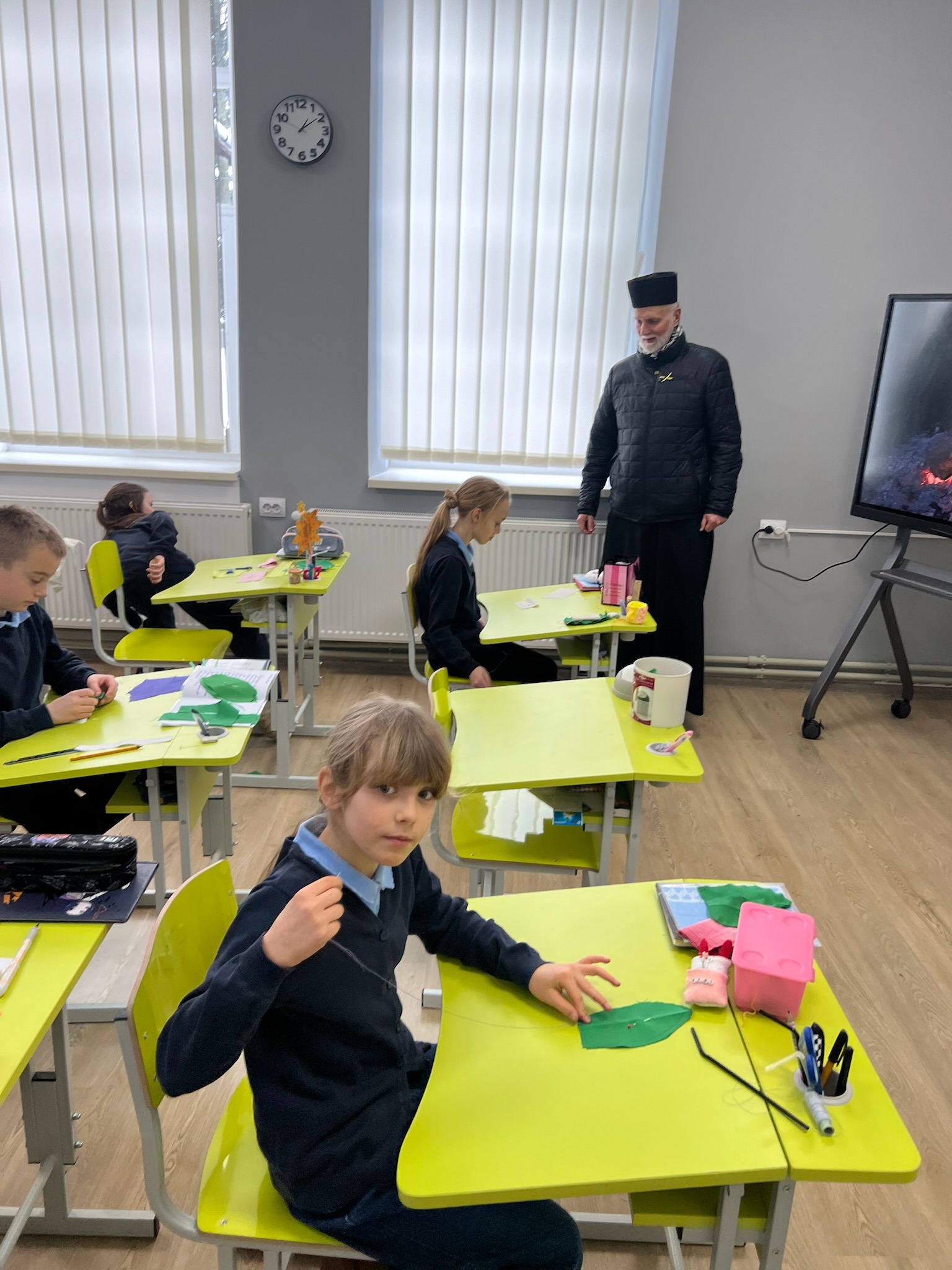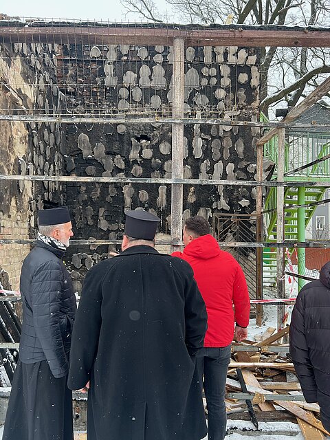 In Kolomyia, the delegation was accompanied by Auxiliary Bishop Petro Holinei and Fr. Serhii Tryfiak, Director of Caritas Kolomyia. The visit began at St. John Paul II Catholic School, which recently suffered damage due to a fire. Despite the challenges, the school community shared that classes were never suspended, as the other school’s building and the eparchial chancery provided temporary space for learning.