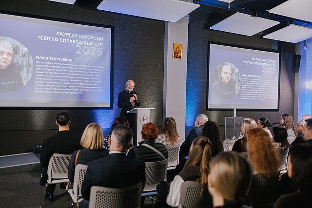 That same day, Metropolitan Borys presented the Light of Justice Award to Maksym Butkevych, a human rights defender, journalist, and co-founder and board member of the ZMINA Human Rights Center. In June 2022, Butkevych was captured by Russian forces while serving as an officer in the Armed Forces of Ukraine and spent two years and four months in captivity.