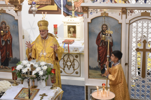 Following the Liturgy, everyone gathered for a buffet dinner, talks, and music at a local restaurant, Columbus Grill in Manassas. In addition to being honored by the presence of Metropolitan Borys, the parish was blessed with a choral performance by talented parishioner Iryna Bhushan and a piano recital by distinguished pianist Oksana Sukhachevska.