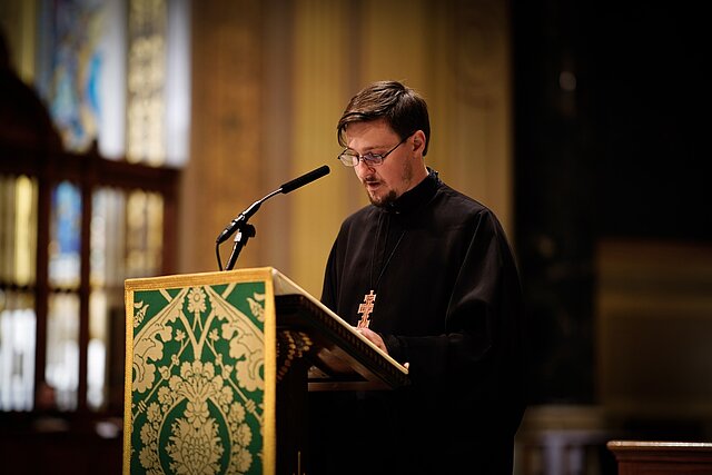 During the service, prayers of thanksgiving were offered, the Word of God was solemnly proclaimed, and the Nicene Creed was sung in three languages—English, Latin, and Greek.