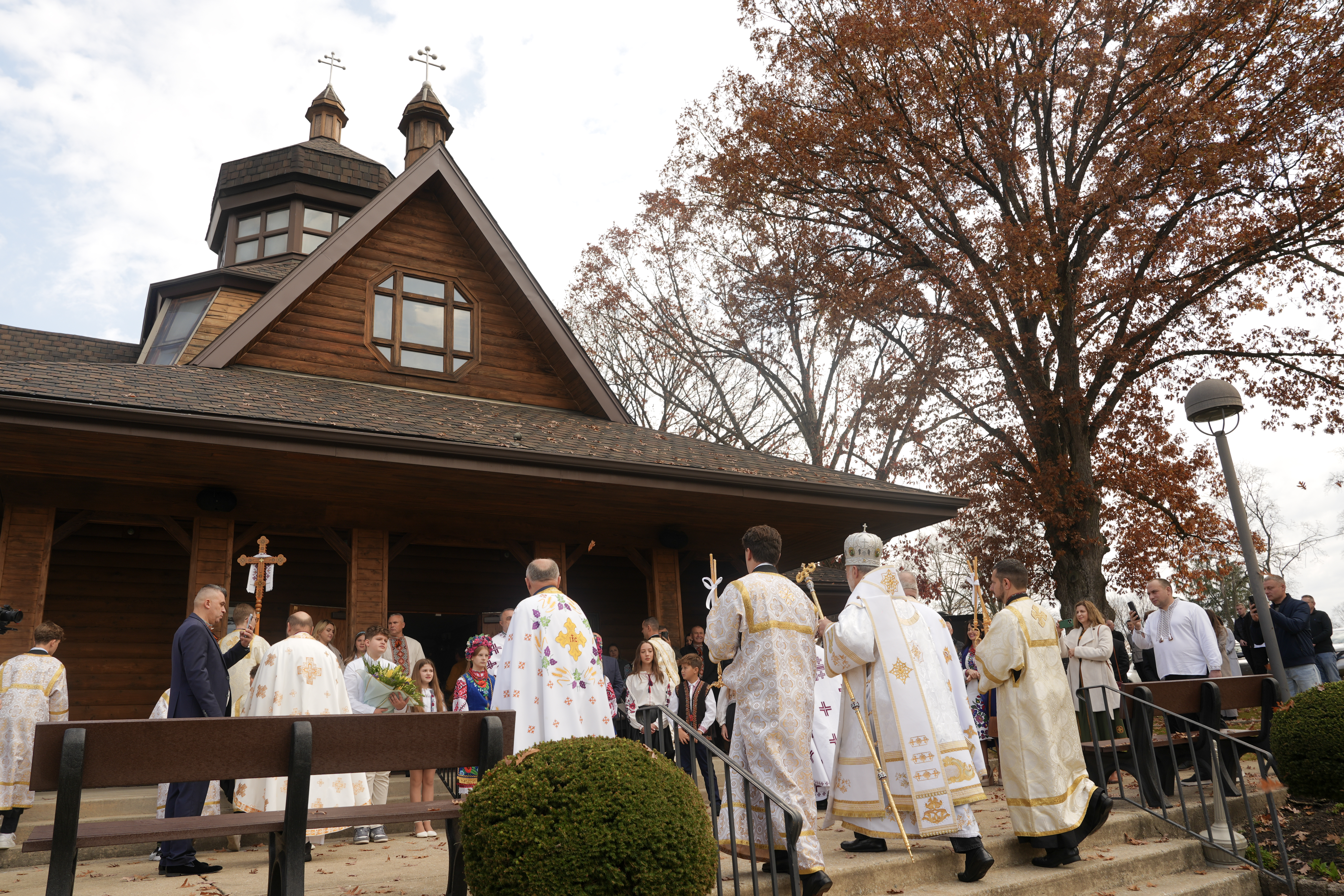 On Sunday, November 9, 2025, before the Divine Liturgy, the parish youth welcomed the Metropolitan in the traditional Ukrainian way — with bread and salt. Concelebrating the Divine Liturgy were Rev. Vasyl Kharuk, Rev. Ostap Mykytchyn, Rev. John Ciurpita, Rev. Raphael Strontsitskyy, Rev. Vasyl Sivinskyi and Deacon Ihor Demydas.