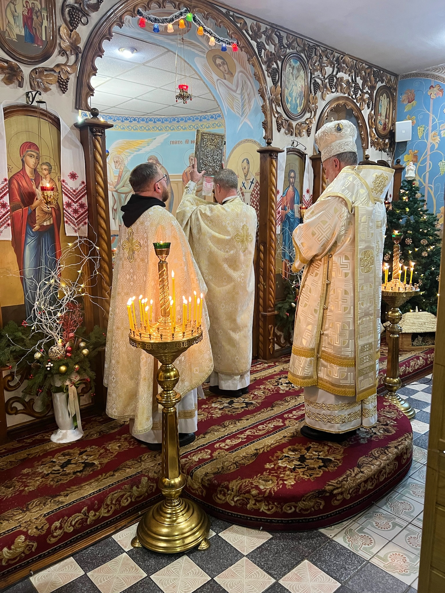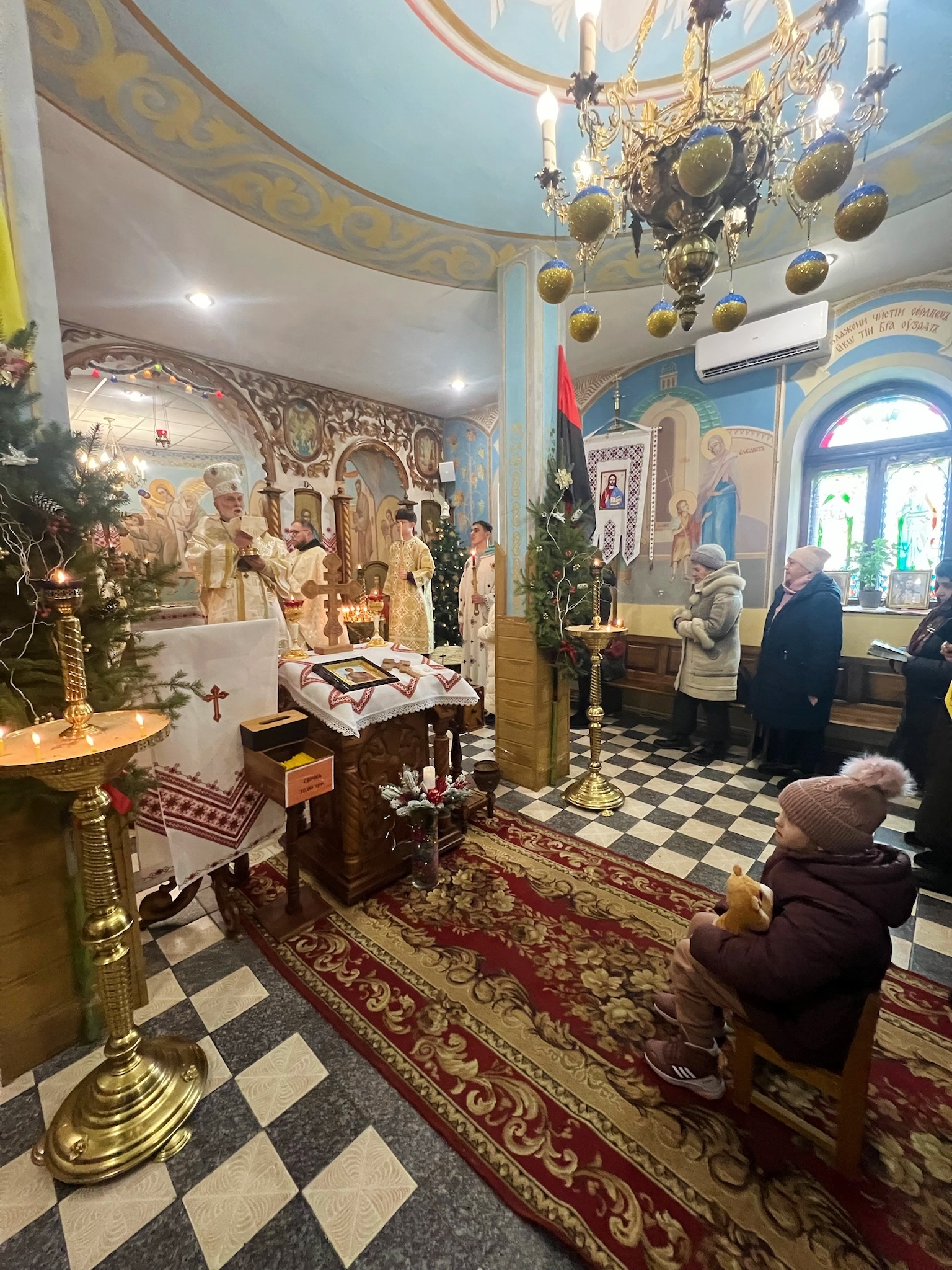 In Fastiv, the Metropolitan presided over an Archierarchal Divine Liturgy at the Parish of St. Great Martyr Demetrius, where Fr. Vitalii Martsyniuk serves. Addressing the faithful in his homily, Metropolitan Borys expressed his gratitude for the opportunity to pray together with the community, calling it a “great joy, honor, and privilege” to be present with them.
