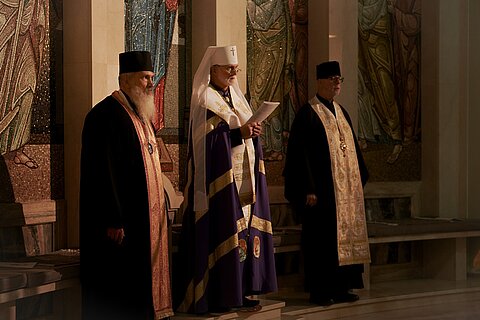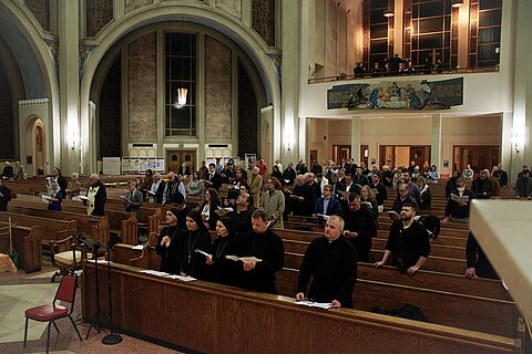 The evening opened with Vespers according to the Byzantine Rite, celebrated by Metropolitan Archbishop Borys Gudziak and accompanied by a men’s ensemble of chanters under the direction of Fr. Herman Majkrzak. This service, held in collaboration with the Durandus Institute for Sacred Liturgy & Music, set a tone of reverence and unity that carried into the program that followed.