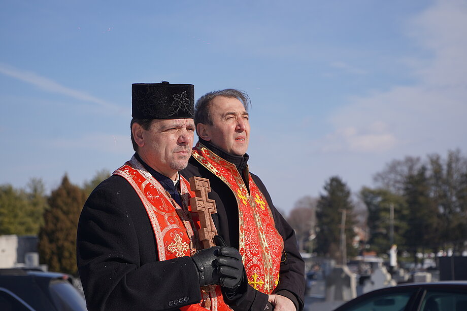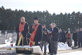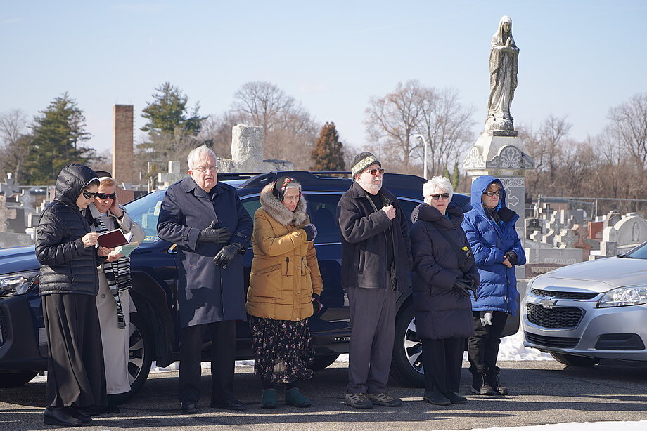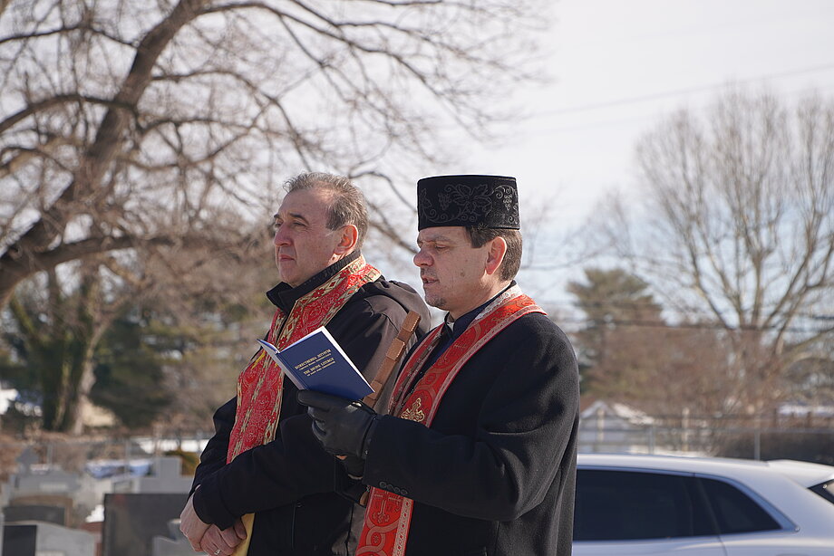 The commemorative program began at 11:00 a.m. with a Panakhyda (Requiem Service) and Commemoration Ceremony at St. Mary’s Ukrainian Catholic Cemetery on Cedar Road in Elkins Park / Jenkintown, Pennsylvania. Clergy, community leaders, faithful, and guests assembled in prayerful remembrance of those who gave their lives for Ukraine’s freedom and for the unity of its lands and people.
