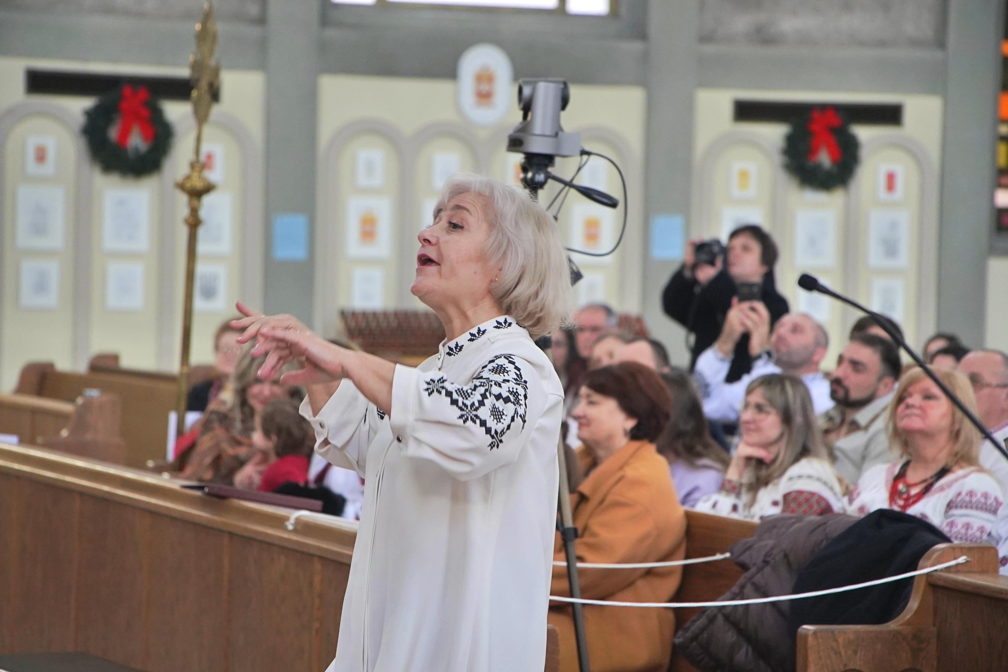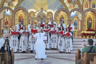 Next, the audience heard a performance by the Choir of St. Nicholas Ukrainian Catholic Parish, Philadelphia, PA, with the carols "Oh Lado Lado" and "Let's cheer up" (Vozveselimsya). The director of the choir is Olesia Nakonechna and the performance was conducted with the gaudiness of Yaryna Yakubyak.