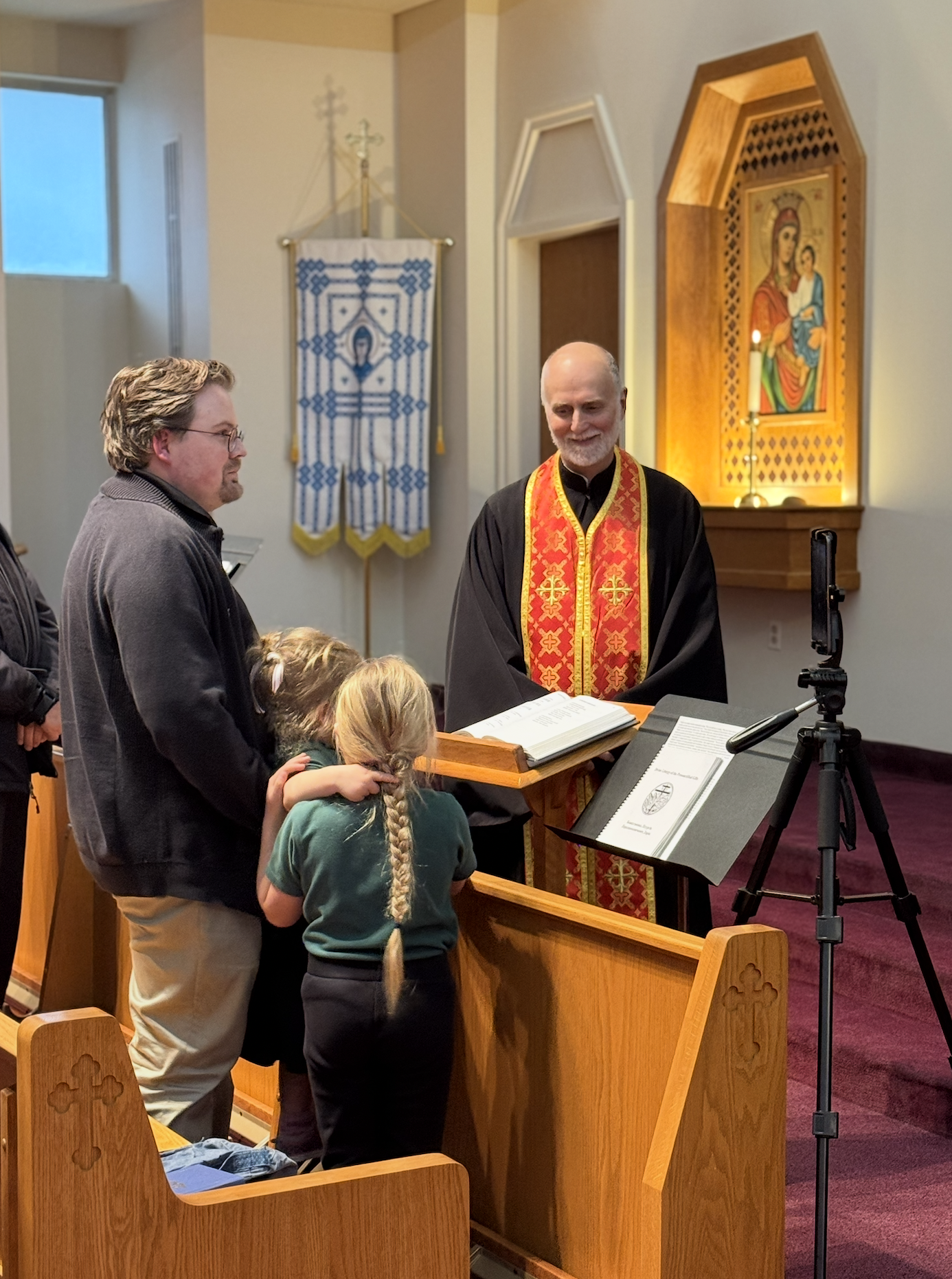 Following this, Archbishop Gudziak invited prayers for the repose of the soul of iconographer Christine Dochwat, who had recently fallen asleep in the Lord. A special place in her work is held by the Cathedral of the Immaculate Conception in Philadelphia, where she created the iconostasis and mosaics.
