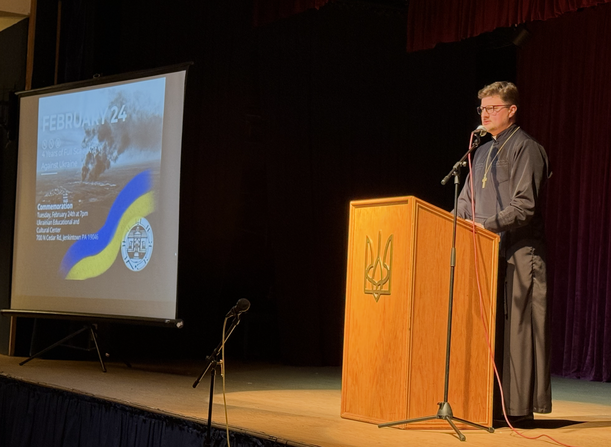 On Tuesday, February 24, 2026, clergy of the Ukrainian Catholic Archeparchy of Philadelphia joined the community commemoration marking the fourth anniversary of Russia’s full-scale invasion of Ukraine. The commemorative evening was hosted by the Ukrainian Educational and Cultural Center in Jenkintown, Pennsylvania.