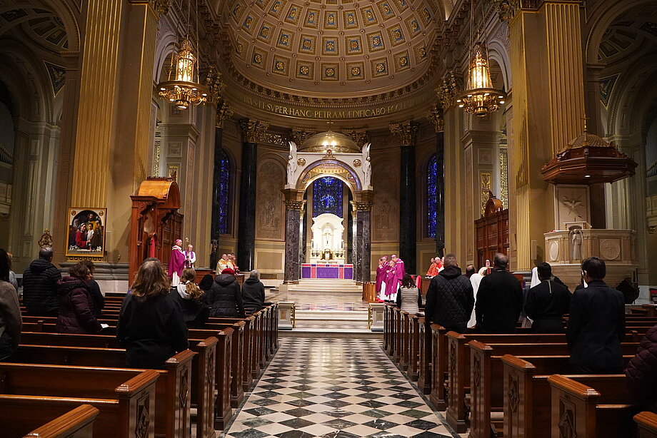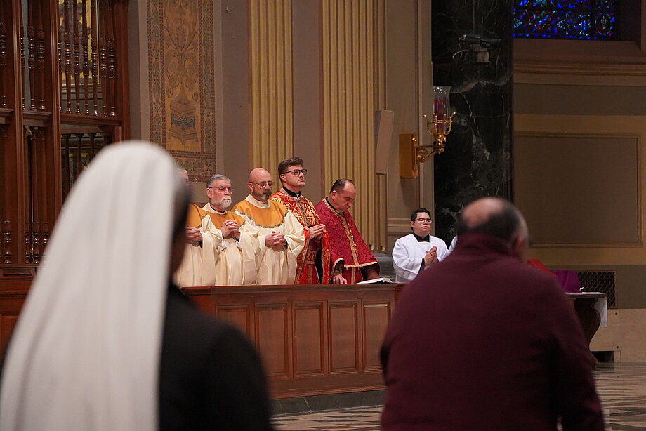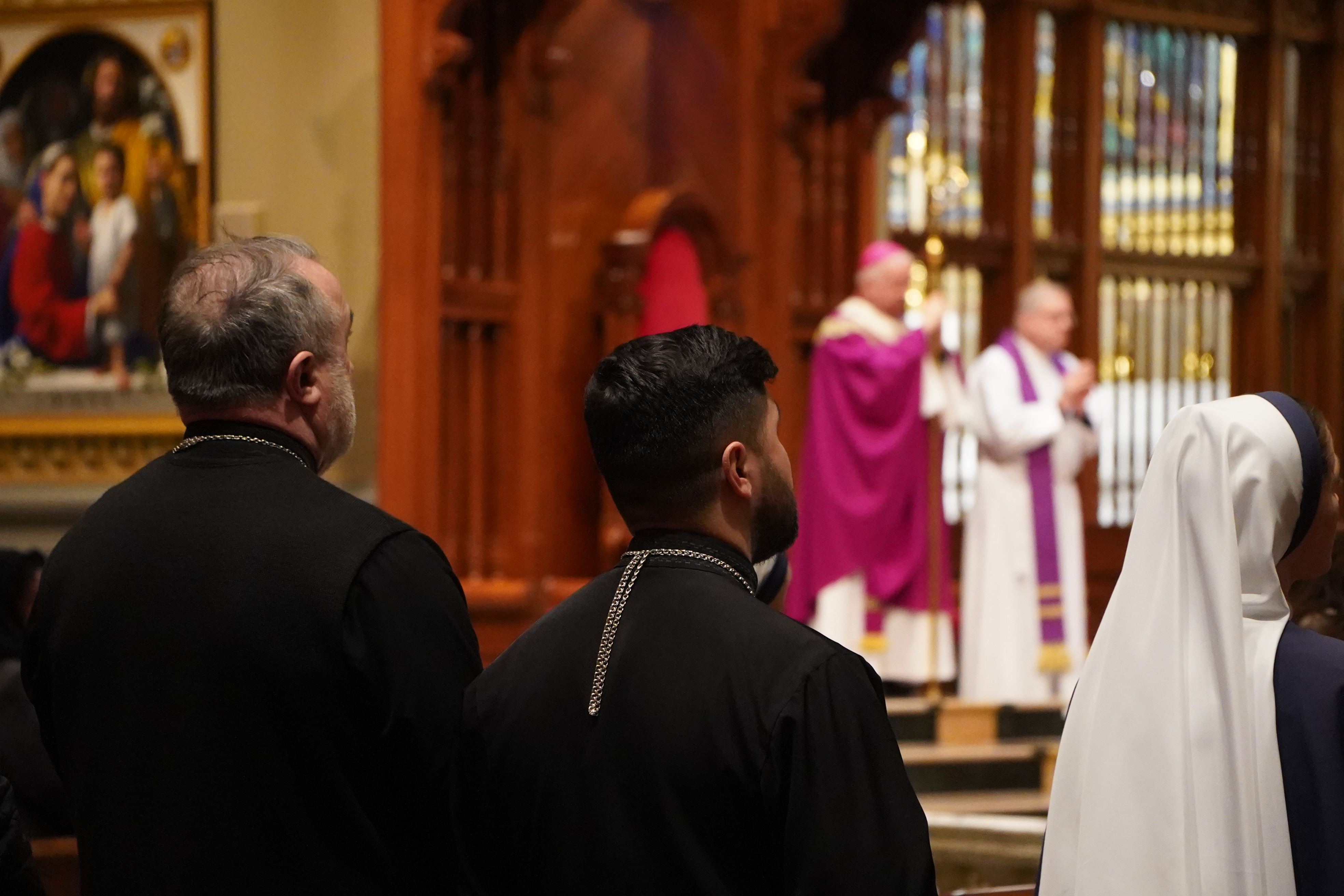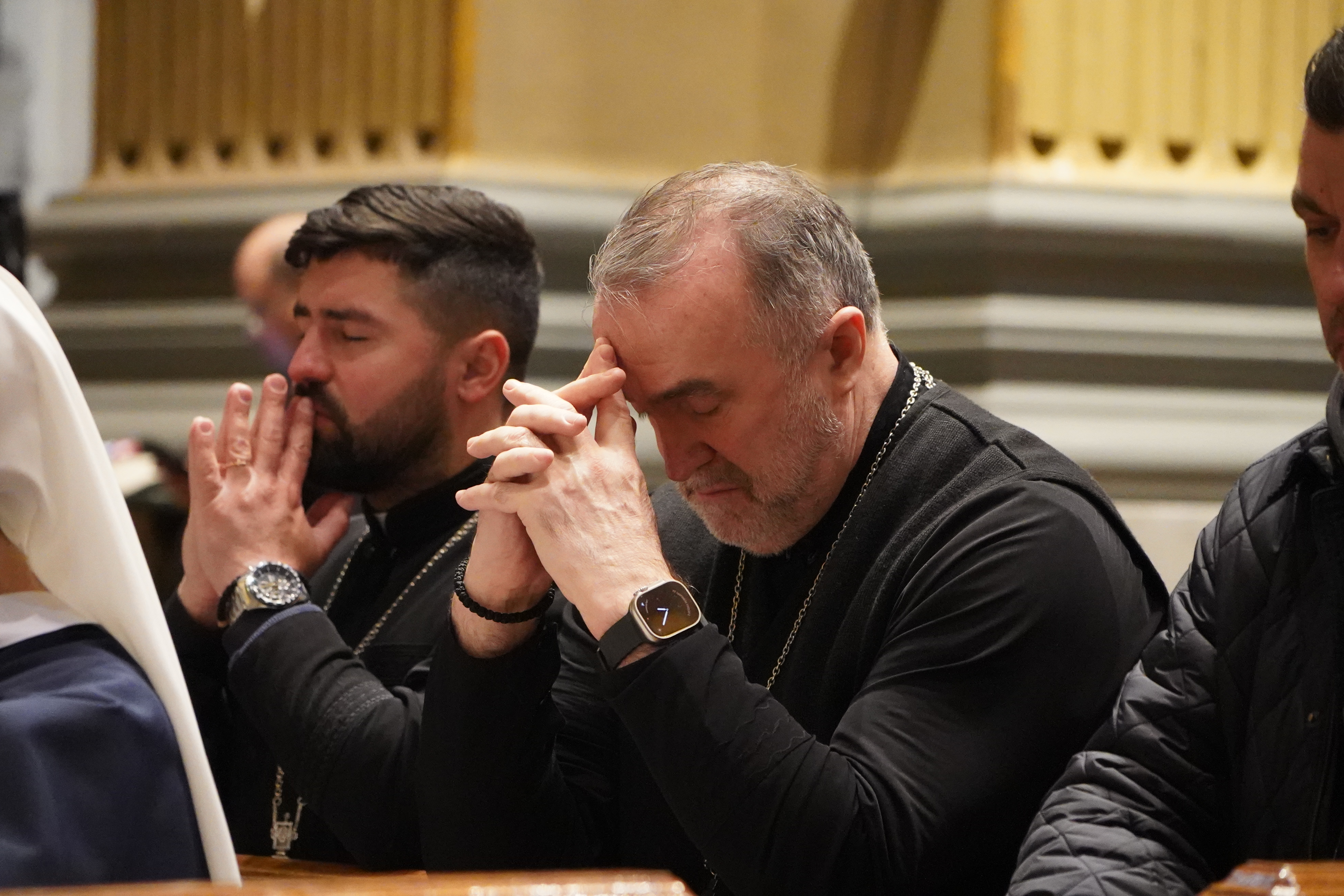 On February 24, 2026, clergy of the Ukrainian Catholic Archeparchy of Philadelphia — Fathers Peter, Ruslan, Roman, Ostap, and Vasyl — joined the Mass celebrated at the Cathedral Basilica of Saints Peter and Paul on the Day of Prayer for Peace.
