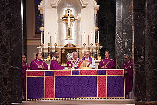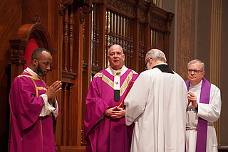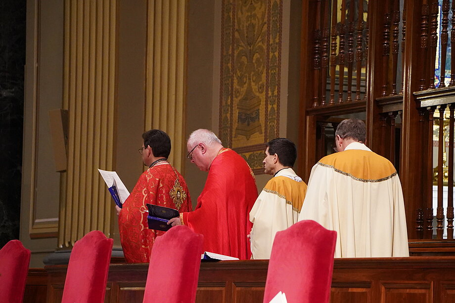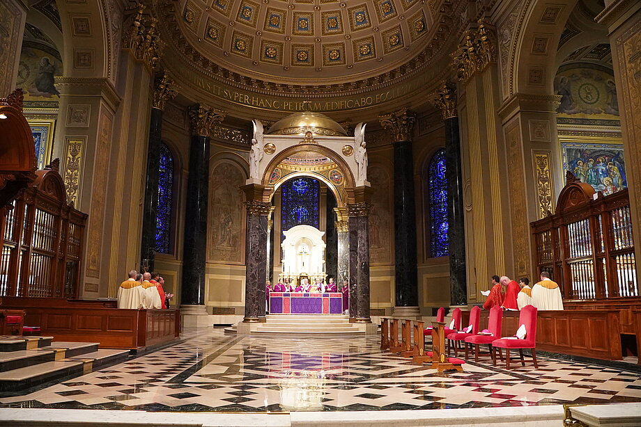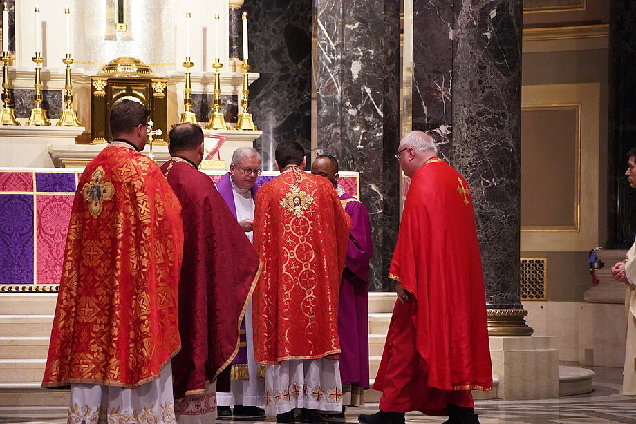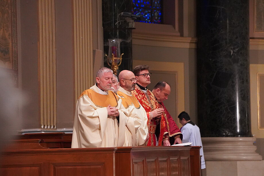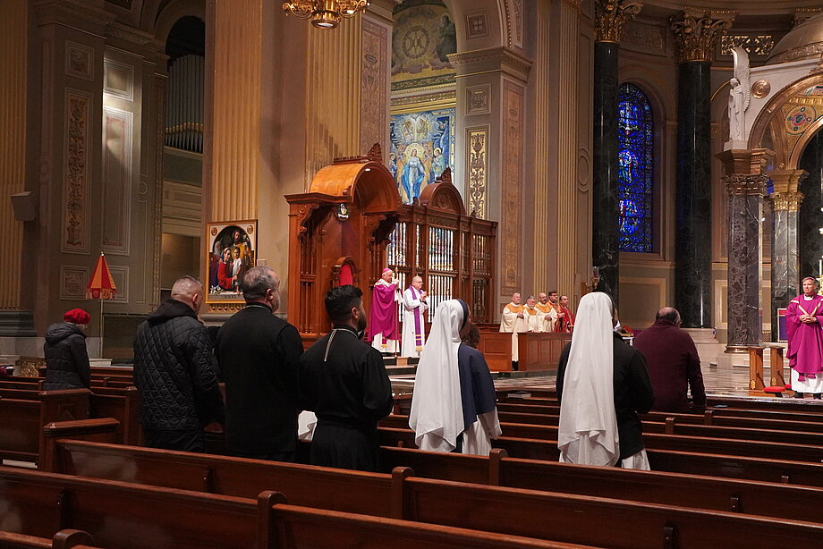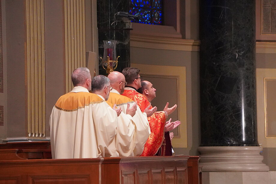 On February 24, 2026, clergy of the Ukrainian Catholic Archeparchy of Philadelphia — Fathers Peter, Ruslan, Roman, Ostap, and Vasyl — joined the Mass celebrated at the Cathedral Basilica of Saints Peter and Paul on the Day of Prayer for Peace.