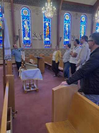 Lastly, the group visited the Transfiguration of Our Lord Church in Shamokin, which is currently the oldest church in the area. Fr. Volodymyr Prokipchuk along with Fr. Mark Fesniak spoke of the history of the parish and shared some interesting facts.