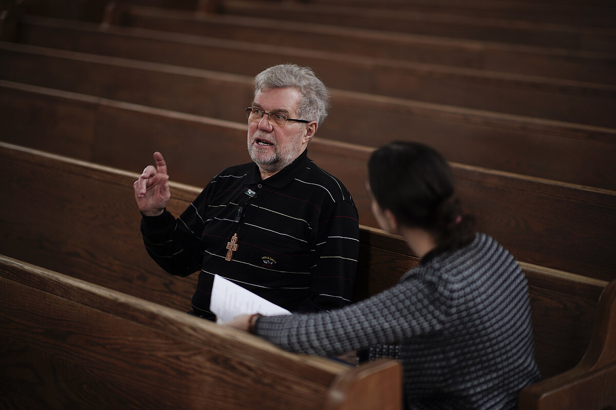 His tone shifts in the conversation about Pascha — from explanation to witness.