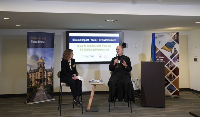 On April 20, at a fireside chat moderated by Mary Gallagher, Dean of Notre Dame's Keough School of Global Affairs, during the Ukraine Impact Forum: Faith & Resilience — jointly organized by the University of Notre Dame and the Ukrainian Catholic University — Metropolitan Borys Gudziak reflected on universities, the Church, and Ukrainian resilience amid Russia's ongoing war.