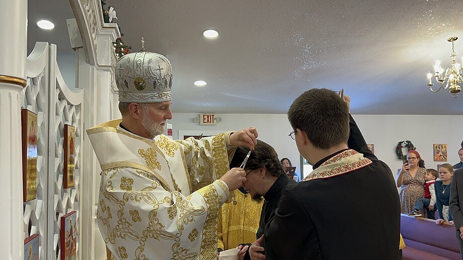 On January 26, the parish of Saints Joachim and Anna, Front Royal, Virginia, was filled with joy and celebration as Metropolitan Archbishop Borys Gudziak celebrated a Hierarchical Divine Liturgy and called Kyle R. Hayes and David M. Wallace to receive the Minor Orders of Candle-bearer, Reader, Cantor, and Subdeacon. The ordinations took place before the Liturgy.