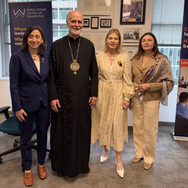 The World Affairs Council of Philadelphia hosted a reception in her honor. Following a welcome by Lauren Swartz, President and CEO of the Council, Ambassador Stefanishyna met with a diverse group of guests, including members of the Ukrainian community, fellow diplomats, and Philadelphia city officials.