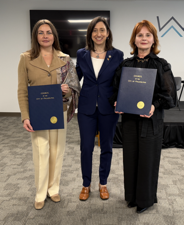 During the event, Rue Landau, a member of the Philadelphia City Council, presented Iryna Mazur, Honorary Consul of Ukraine in Philadelphia, and the Ukrainian Catholic Archeparchy of Philadelphia with a resolution honoring Ukrainian organizations in Philadelphia for their service to Ukrainian Americans, Ukrainian refugees, and the broader community. The resolution had been introduced in City Council and unanimously adopted on February 19, 2026. Accepting it on behalf of the Archeparchy was Marta Rubel.
