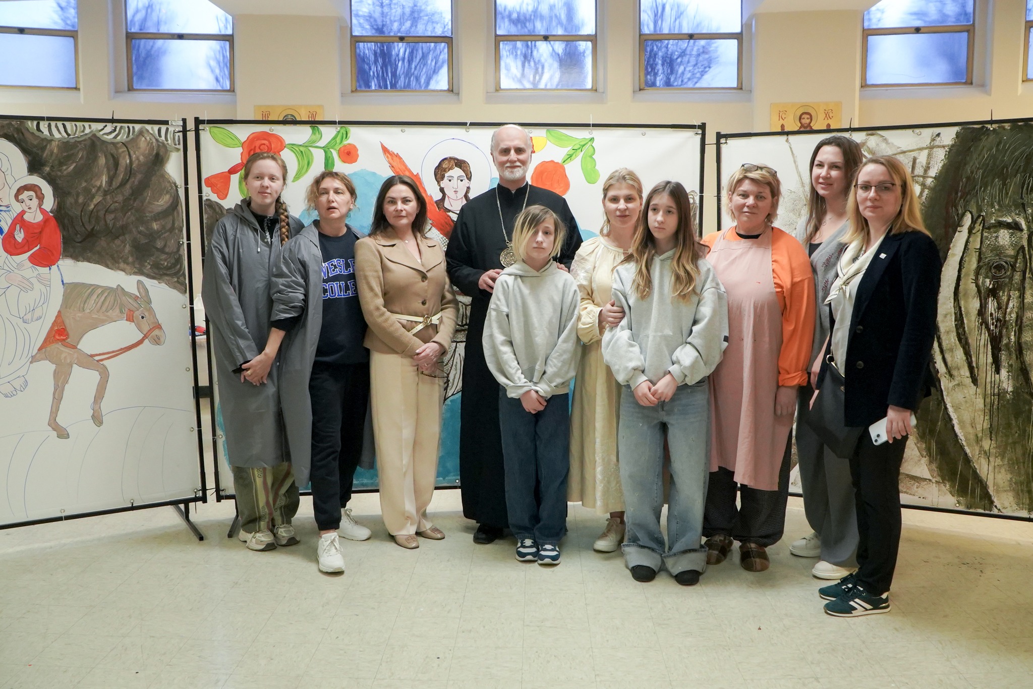 During the visit, Ambassador Stefanishyna, members of her team, Metropolitan Borys, and Honorary Consul Iryna Mazur also participated in creating the canvas “Song of Songs of the Ukrainian People.” The monumental mural is being developed by three Ukrainian artists as a collective artistic project in which children, adults, wounded soldiers, and members of the community are invited to contribute.