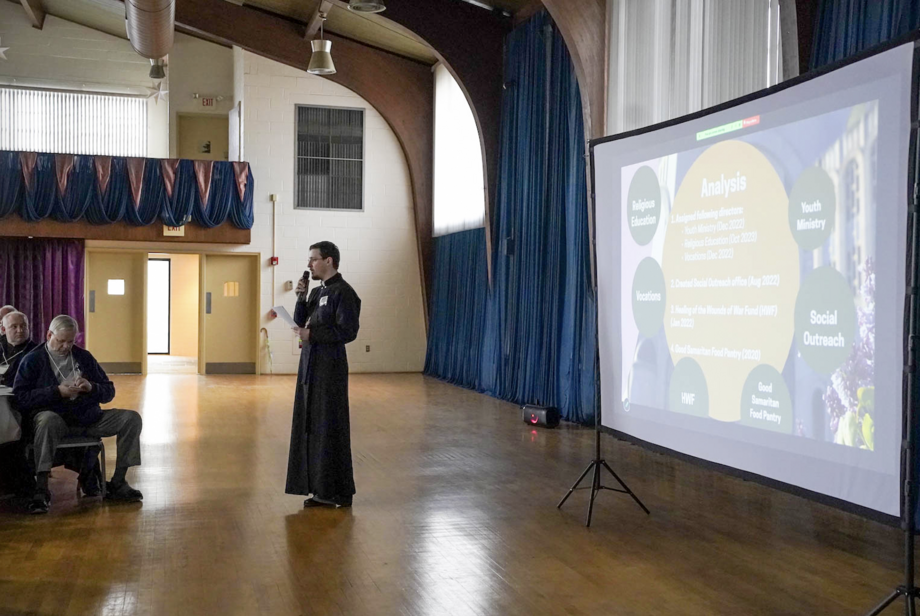 Monsignor Peter Waslo, Vicar General and Chancellor, addressed pastoral structures and the state of parish life across the Archeparchy. His remarks focused on the need for renewed engagement at the parish level, calling for greater participation from both clergy and laity. He emphasized the importance of personal initiative, active invitation, and a genuine openness to others as essential conditions for building vibrant, mission-driven parish communities.