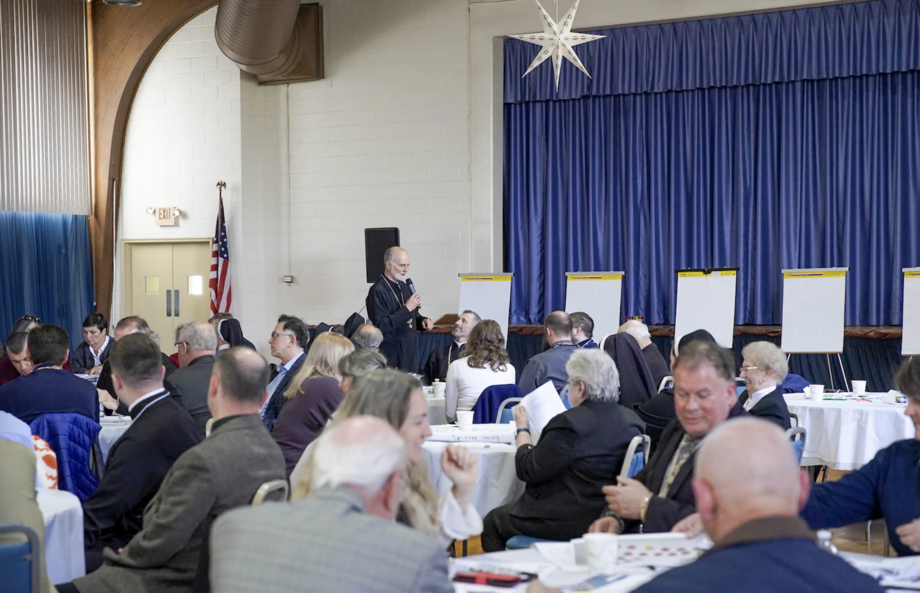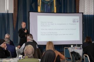 The session's second half shifted from review to forward planning, with a dedicated focus on developing new approaches to evangelization. Working in small groups, participants reflected on what evangelization means within the specific context of the Philadelphia Archeparchy and identified practical ways to strengthen and expand this mission. Their proposals were recorded and displayed on flip charts, fostering open discussion and shared reflection across the full assembly.